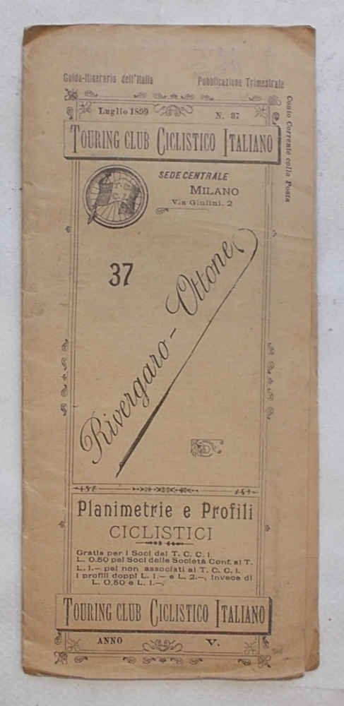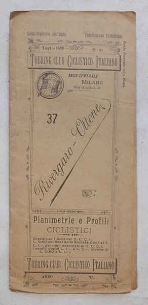 Tavola di 12 facciate di cm. 21 x 8 (perciò lunga cm. 96 circa). VG. ** Le "Planimetrie e profili ciclistici" del Touring Club Ciclistico Italiano sono una collezione di pubblicazioni che ha qualcosa, anzi è più esatto dire molto! di epico: i 57 itinerari, pubblicati in 51 fascicoli tra il 1896 e il 1901, Luigi Vittorio Bertarelli, il fondatore del T.C.I., se li è fatti tutti in bicicletta, appuntando ogni informazione utile su un taccuino. Ogni itinerario è descritto su una lunga tavola, che si svolge orizzontalmente e che è ripiegata in una copertina con titoli, fregi e piccolo stemma del T.C.C.I. La tavola presenta un profilo altimetrico a tre colori e la cartina dell'area, con il tracciato evidenziato in rosso. Il profilo, oltre alle quote, contiene l'indicazione delle distante, della qualità delle strade (polverose, discrete, buone.), delle tappe e altre notizie utili (sorgenti, "splendido panorama", hotel, ristoranti, servizi postali.).