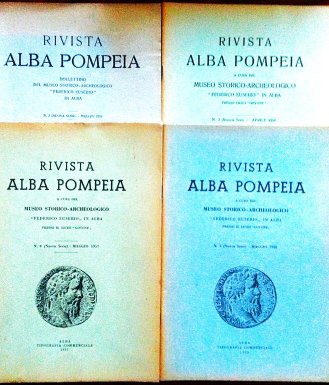 Rivista Alba Pompeia a cura del Museo Storico Archeologico "Federico Eusebio" in Alba presso il Liceo "Govone". N. 2-3-4-5 (Nuova Serie), Maggio 1955-Maggio 1958.