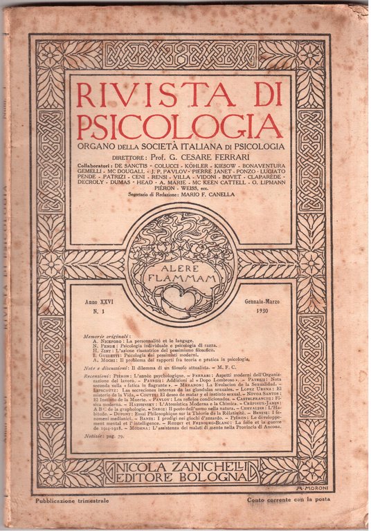 Rivista di psicologia ( pubblicazione trimestrale ) Organo della società italiana di psicologia