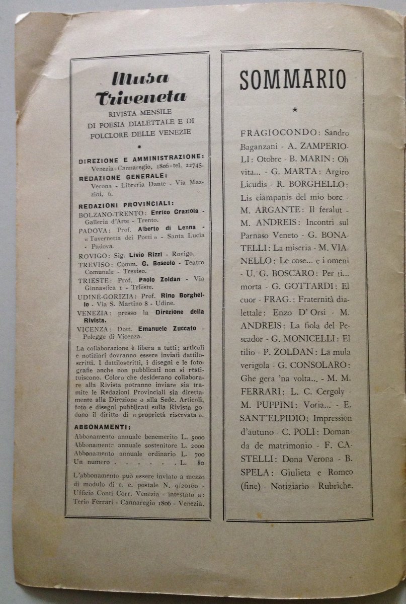 Rivista Mensile Poesia Dialettale Folclore Musa Triveneta 2 Numeri 2 5 1949 50