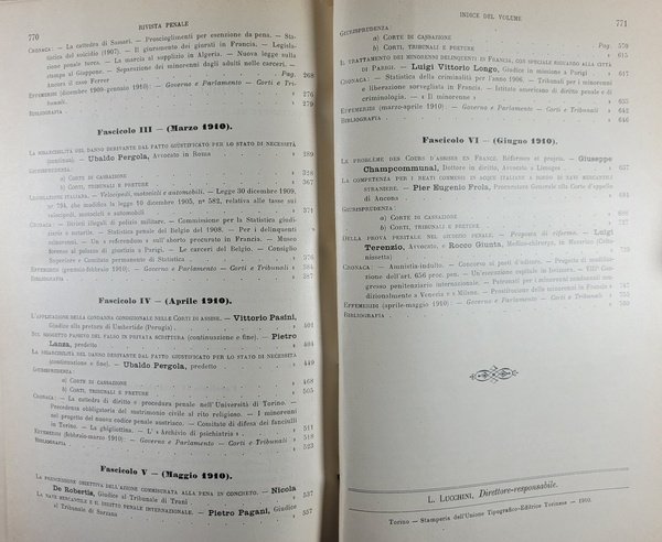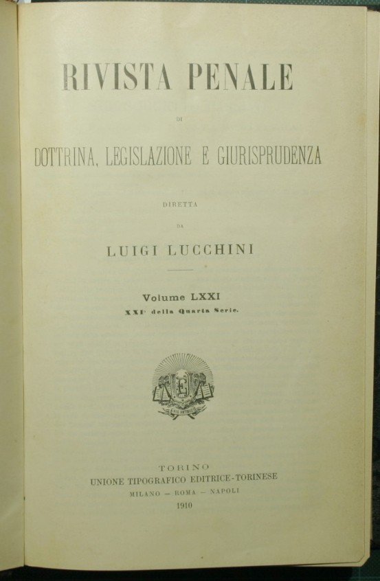 Diretta da Luigi Lucchini - in 8° - pp.771 - Mezza pelle con titolo e fregi in oro al dorso - Vol. LXXI - XXI della quarta serie