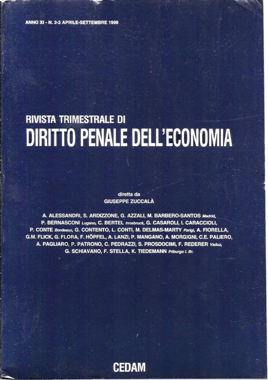 Rivista trimestrale di - DIRITTO PENALE DELL ' ECONOMIA - ANNO XI N 2-3 APRILE / SETTEMBRE 1998