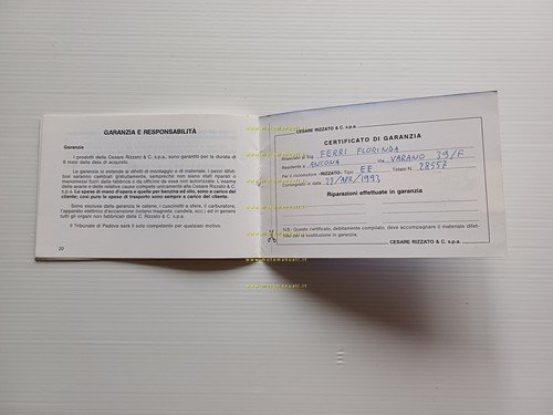 Rizzato motore 50 122 1993 manuale uso manutenzione libretto originale