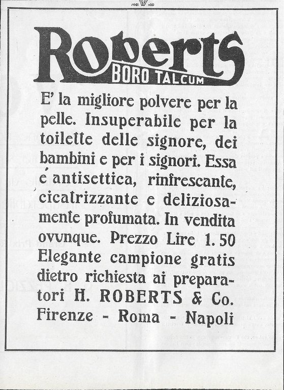 Roberts. Boro Talcum. Advertising 1912