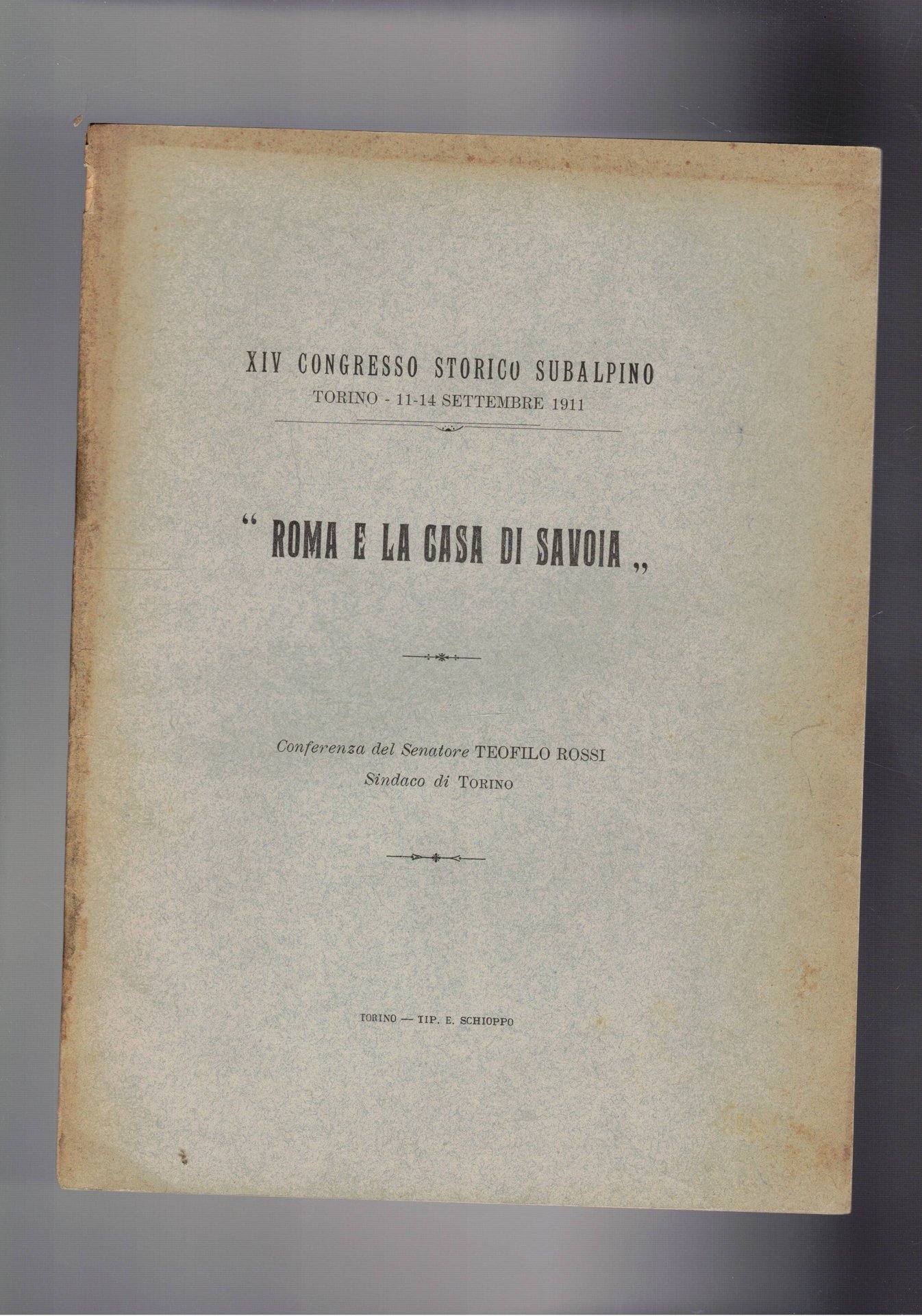 Roma e la casa di Savoia. Conferenza del sindaco di Torino al XIV congresso storico Subalpino del 1911.