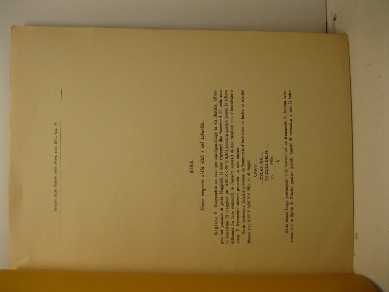 Roma. Nuove scoperte nella citta' e nel suburbio. Estratto dalle Notizie degli Scavi, anno 1912, fasc. 5