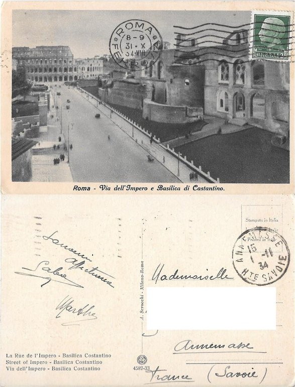 Roma. Via dell'Impero e Basilica di Costantino. Viaggiata 1934