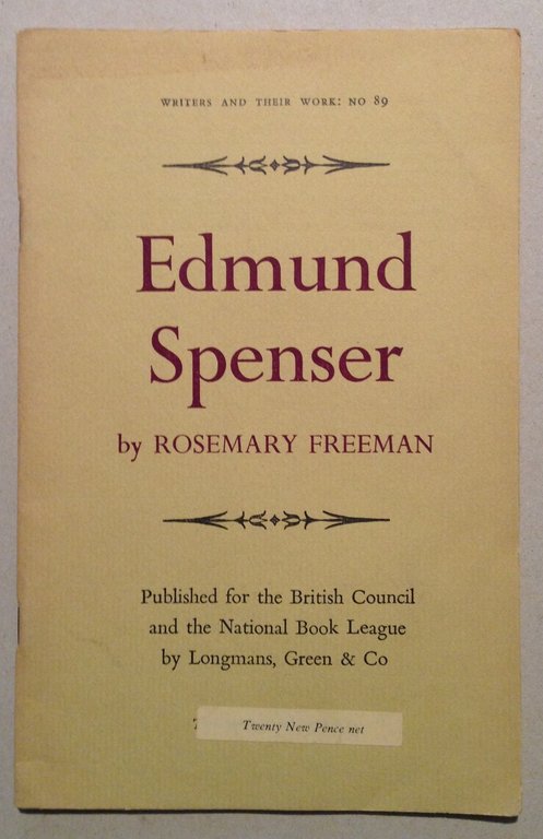 Rosemary Freeman, Edmund Spenser Longmans, Green&Co, 1968, cm. 21.5x14, pp. 40; testo in lingua inglese; br. ed. Condizioni di conservazione Esemplare in buono stato con leggere tracce d'uso. OPEB.3820 MT