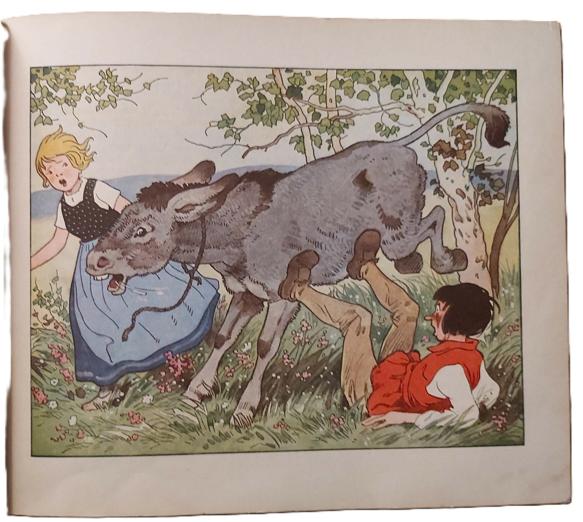 in-8 obl., pp. nn. 8, leg. cartone edit. con copertina a colori. Con 8 tavv. a colori che illustrano la fiaba. Picc. strappi al d. ma ottimo esempl. [017]