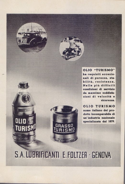S.A. Lubrificanti E. Foltzer. Genova. Advertising 1940