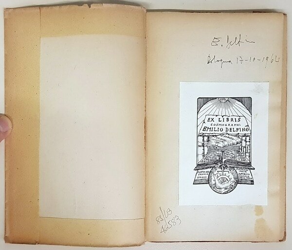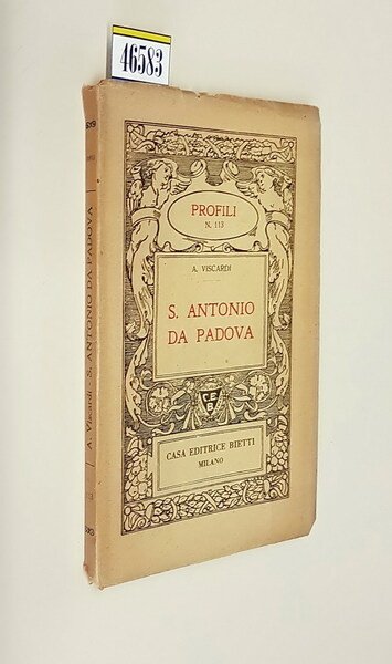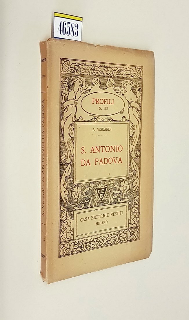 Volume in -16 (11 x 17 cm.), legatura in carta falsa pergamena con silografia in nero e titoli in rosso sul piatto ant., pp. 80, 1 tav. in b.n. con ritratto di S. Antonio in antiporta. Ex-libris Emilio Delfino (cartografo e pittore) applicato sul primo foglio bianco, Leggeri segni del tempo alla copertina ma nel complesso in buone condizioni.
