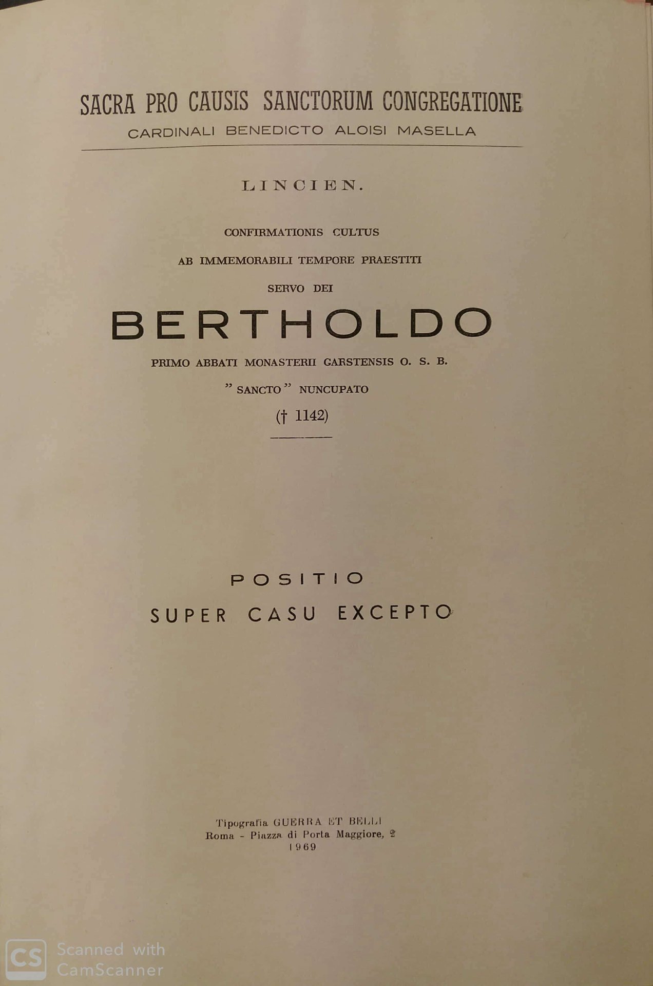 Sacra Pro Causis Sanctorum Congregatione. Confirmationis cultus ab immemorabili tempore praestiti Servo Dei Bertholdo.