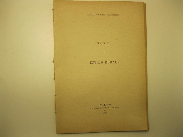 In 8, pp.90.  Br. rifatta.  Contiene perizie e analisi fatte dal prof. Ferdinando Alfonso in qualita' di perito giudiziario.  Dall'indice: - Perizia per una vendita di Agrumi controversa - Indennizzamento per una vendita di Agrumi - Tornaconto del Tabacco in Palermo - Perizia estimativa della variante ferroviaria Cinisi-Terrasini - Estimazione di un agrumeto e di una sorgente