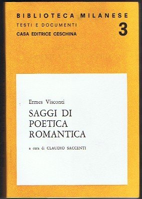 Coll. Biblioteca milanese Testi e documenti Bross. sov. (20X14) pp. 435 E. Visconti fu uno dei più fedeli e autorevoli collaboratori di Manzoni, del quale animò il "crocchio" e del quale fu consigliere filosofico e letterario, sino al punto di fornirgli il famoso promemoria romantico ( "Idee elementari sulla poesia romantica" e "Dialogo sulle unità drammatiche" ) e di proporgli alcune correzioni stilistiche al testo del "Fermo e Lucia": correzioni che entreranno nella storia dei "Promessi sposi". Il volume reca tutti i saggi del Visconti inerenti la poetica romantica presentati da un'ampia introduzione storica e informativa, corredati di bibliografia e commenti a piè di pagina. In perfetto stato