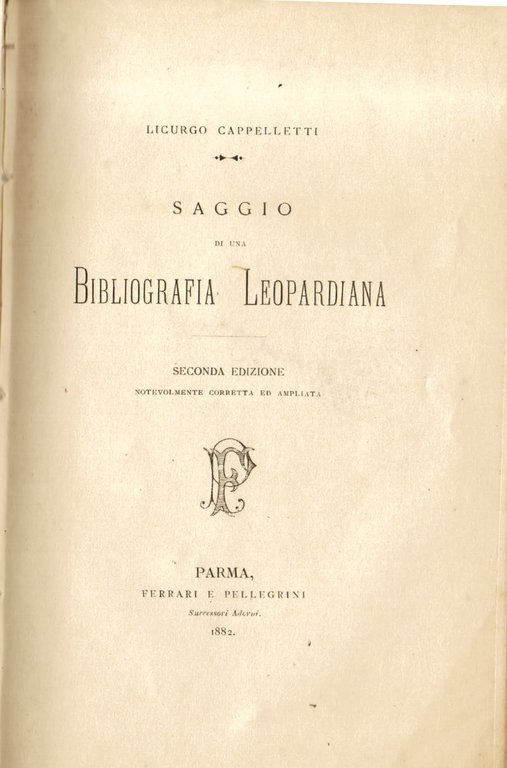 Saggio di una bibliografia leopardiana. Seconda edizione notevolmente corretta ed ampliata