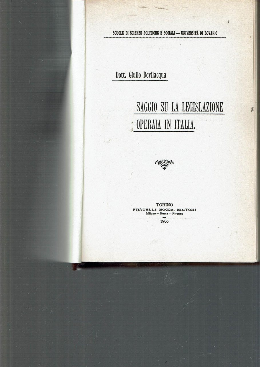 SAGGIO SU LA LEGISLAZIONE OPERAIA IN ITALIA (ANASTATICA)