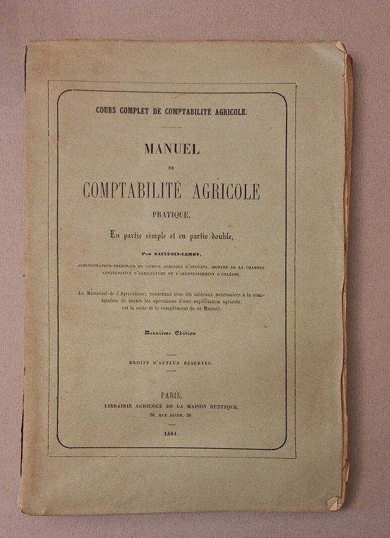 SAINTOIN LEROY MANUEL DE COMPTABILITE' AGRICOLE PRATIQUE. PARIS LIB. AGRICOLE ..