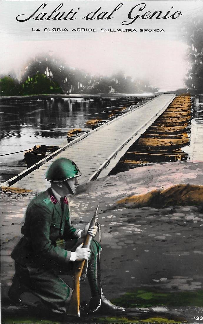 Saluti dal Genio. La gloria arride sull'altra sponda. Non viaggiata, originale 1941