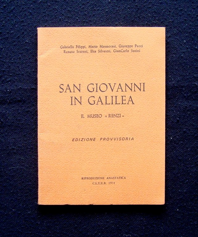 AA.VV, SAN GIOVANNI IN GALILEA Il Museo Renzi" C.L.U.E.B., 1972; cm 17 x 12, pag. 49; br. ed. con molte ill.fot. b/n a fine testo. Riproduzione anastatica. Condizioni di conservazione Esemplare in buone condizioni; leggera traccia di piega all'angolo sup. di tutte le pag. OPEB.4462 blu "