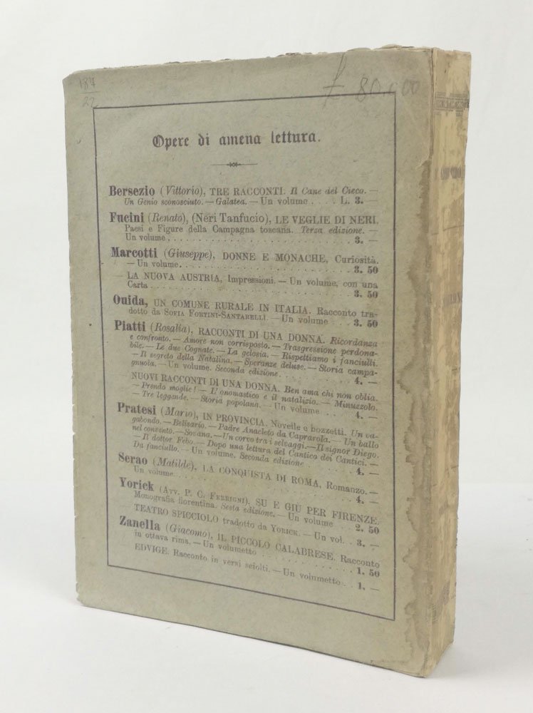 LIBROPrima edizione di una delle più importanti raccolte di racconti del primo D’Annunzio, dove il verismo è piegato al gusto decadente per l’effetto ‘pulp’ e grottesco. Sparsi segni del tempo alla copertina, particolarmente al dorso; nel complesso un bell’esemplare nella non comune brossura originale.