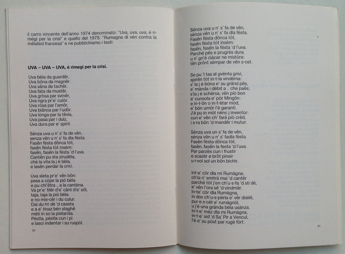 Opuscolo, San Pietro in Vincoli e la festa dell'uva Soc. Cooperativa Cultura Sport Edera", San Pietro in Vincoli, s.d; cm. 24x17; pp. 40; con ill. fot. in b/n; brossura editoriale. Condizioni di conservazione Volume in buone condizioni di conservazione con leggere tracce d'uso; solo brossura editoriale con minime fioriture. OPEB.4694 MT "