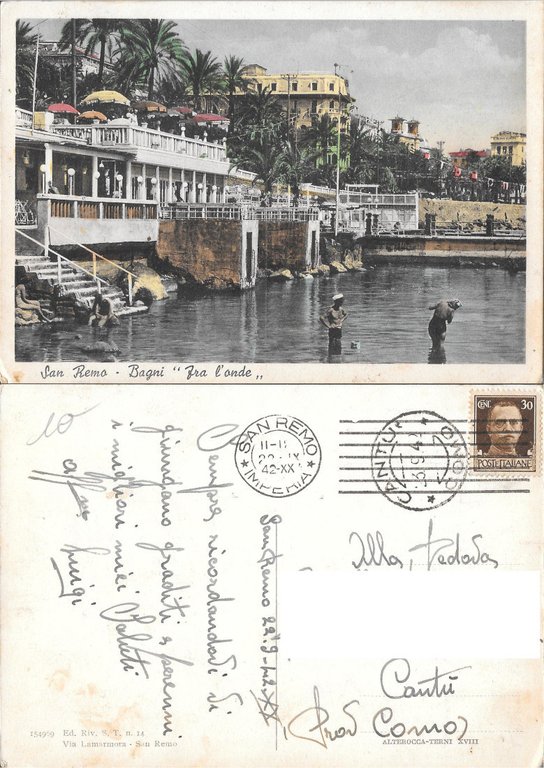 San Remo. Bagni 'Fra l'onde'. Viaggiata 1942