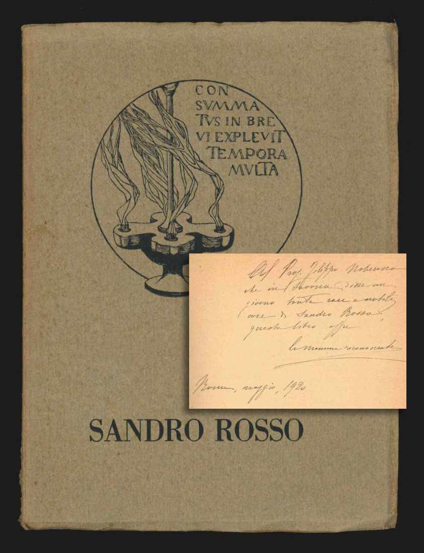 LIBROPrima edizione.Ottimo esemplare (sporadiche fioriture leggere). Invio manoscritto della madre dell’autore: «Al prof. Filippo Noberasco che in Savona disse un giorno tante care e nobili cose su Sandro Rosso questo libro offre la mamma riconoscente. Roma, maggio, 1920».Raccolta di scritti di Giovanni Alessandro Rosso (noto prevalentemente come Sandro Rosso), scomparso a ventinove anni nel 1917. Prefazione di Paolo Boselli, primo ministro al momento della morte di Rosso.