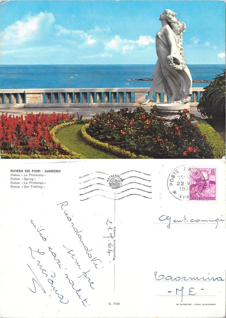 Sanremo. Statua "La Primavera". Viaggiata 1964