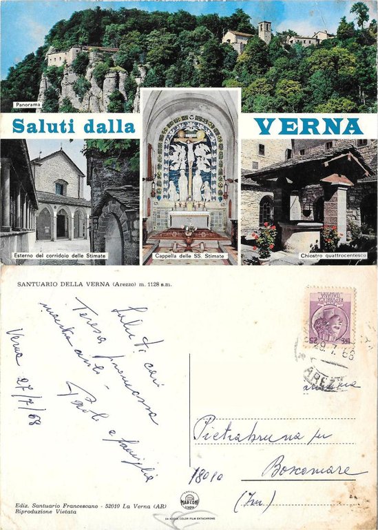 Santuario della Verna (AR). Viaggiata 1968