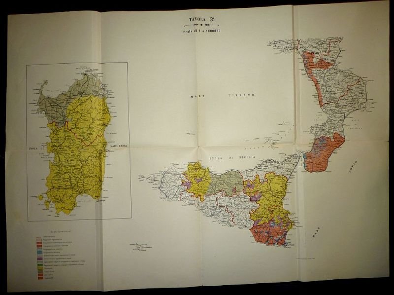 Carta geografica di cm. 73x53, raffigurazioni geografiche con porzioni a colori su fondo bianco. Tavola 3° scala di 1 a 1000000. Legenda con segni convenzionali. Segni di piegatura.