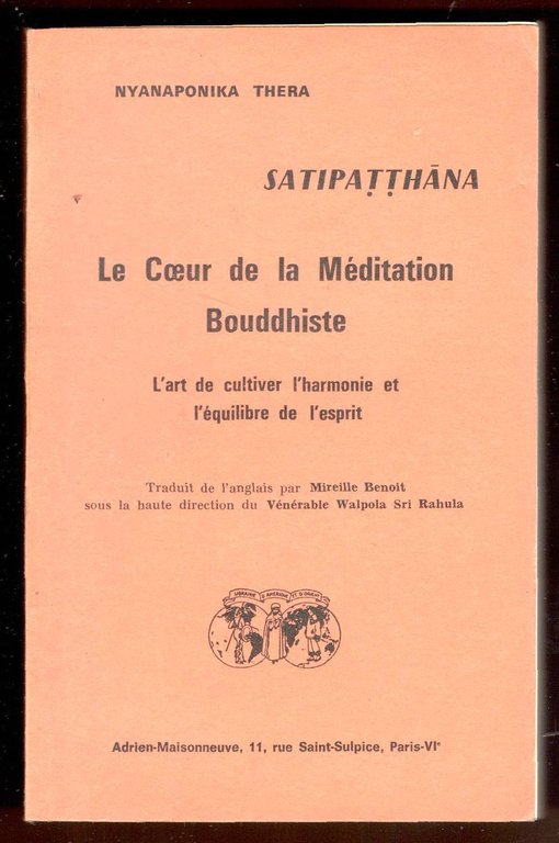 In 8°, pp. 225, (1). Brossura editoriale. Copia molto buona. Traduit de l'anglais par Mireille Benoit sous la haute direction du Venerable Walpola Sri Rahula.