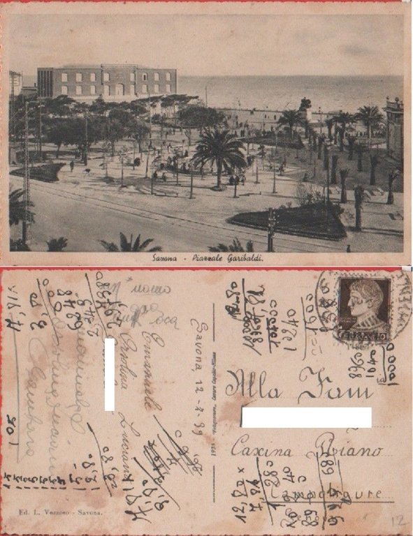 Savona. Piazzale Garibaldi. Viaggiata 1939