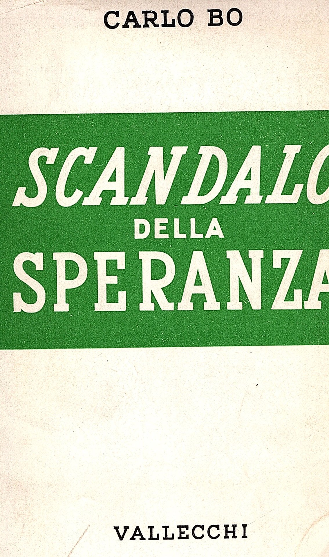 In86°, pp. 334, brossura editoriale con sovracoperta (lacuna alla parte superiore del dorso della sovracoperta). Per ilr esto ottimo esemplare. Dedica auografa dell'autore datata 16\3\57 Edizione originale di questa raccolta di scritti morali del grande critico. 'Ci vuole una parte di illusione per raccogliere pagine di tanti anni e puntate su un solo tema, il tema delle nostre speranze, delle delusioni e dello sconforto. Ma forse non è soltanto illusione per il disegno di una piccola storia umana, forse è la misura stessa del peccato, il segno delle cose che ci vincono e soffocano. Se faccio un breve bilancio degli ultimi dieci anni devo ammettere che la conclusione dovrebbe essere un'altra, anzi che la conclusione dovrebbe essere una sola: la risposta nel nulla, l'assoluto peccato della rinuncia. E invece dico, scandalo della speranza. Perchè è davvero uno scandalo il fatto che possa, nonostante la nebbia della rinuncia, il tradimento della volontà, resistere il segno della speranza. Quel mondo che abbiamo letto con ansia e a volte con vera angoscia avrebbe dovuto rispondere allo stesso modo, con un 'no' irrimediabile e invece al momento di franare ci restituisce un'altra voce, ci da' un segno nuovo, ci fa sfiorare il limite di un'altra speranza, anche se è alla fine una speranza che dà scandalo contro la parete delle nostre infinite miserie' (pp. 1-2).