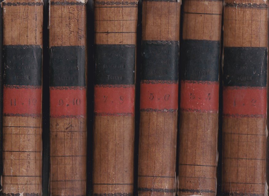 12 tomi in 6 voll. in-8° (228x138mm), pp. (2), 332; (2), 284; (2), 270; (2), 254; (2), 262; (2), 241; (2), 298; (2), 267; (2), 266; (2), 239; (2), 279; (2), 252; cartonature coeve (le legature sono di recupero, in quanto presentano annotazioni contabili di mano coeva ancora chiaramente leggibili ai piatti di diversi volumi) con titolo a secco su tassello nero etomaison in nero su tassello rosso ai dorsi. Bella copia in barbe. Manca il ritratto inciso di Goldoni. Nitida edizione comprendente la traduzione italiana dei 'Mémoires' (occupanti i primi due voll.) e un florilegio delle più belle commedie goldoniane; la dicitura tipografica muta nel corso dell'edizione.