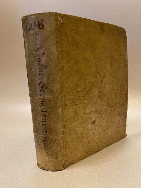 Solida legatura strettamente coeva in tutta pergamena rigida con titolo calligrafato in verticale al dorso, sigla con le iniziali del nome dell’autore manoscritto al taglio superiore, una firma di appartenenza datata 1812 e una firma e un timbretto di privata appart. novecenteschi, copia fresca e in buonissime condizioni. Antiporta incisa su rame da Pietro Michieli da invenzione di Giacomo Bigoni. Testatine, finaletti e capilettera istoriati o arabescati incisi su legno. Precedono componimenti poetici di dedica di Carlo Antonio Agliardi, Clemente Aregazzolo, Paolo Richiedei e un'epigrafe latina in lode del Calvi. Ritratto dell'autore inciso su rame entro cornice a piena pag. e 70 ritratti di scrittori bergamaschi incisi su rame a mezza pagina n.t. Sc. D.