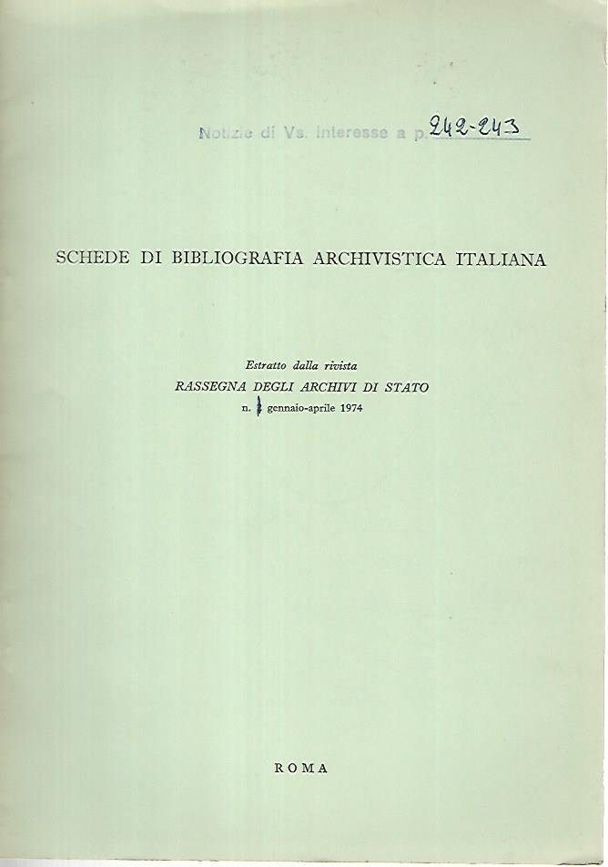 Schede di bibliografia archivista italiana. Gennaio-Aprile 1974