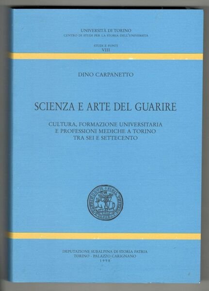In 8°, pp. X, 318, (2). Brossura editoriale. Copia nuova. Miscellanea di storia italiana, serie V, Studi e fonti per la storia della Università di Torino, vol. VIII.