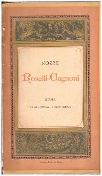 8° bross. edit. figur. pp. 70. Raccolta di inediti del Della Casa tratti da 3 codici conservati nella biblioteca Chigi. "Per Nozze Roselli-Cugnoni". Piccola menda al dorso, alcune fiorit. sparse.