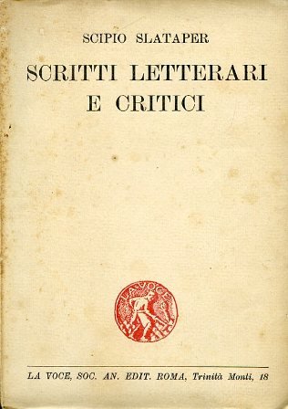 In-8°, pp. 317 + 16 di catalogo editoriale su carta azzurrina, brossura editoriale con logo de La Voce impresso in rosso disegnato da Ardengo Soffici. Ottimo esemplare in barbe. Firma di possesso di Claudio Gorlier. Edizione originale, curata in sede postuma da Giani Stuparich (Slataper era caduto in combattimento sul Podgora, proprio come Renato Serra, il 3 dicembre 1915). Comprende una raccolta di 'Novelle, fiabe, parabole' di libera invenzione fantastica, gli scritti critici dell'autore triestino (riguardanti, fra l'altro, Goethe, Hebbel, il Tasso, Medardo Rosso, il Futurismo, Saba) e una bibliografia degli scritti su Slataper sino al 1920. Gambetti / Vezzosi, p. 872. Spaducci, p. 276.