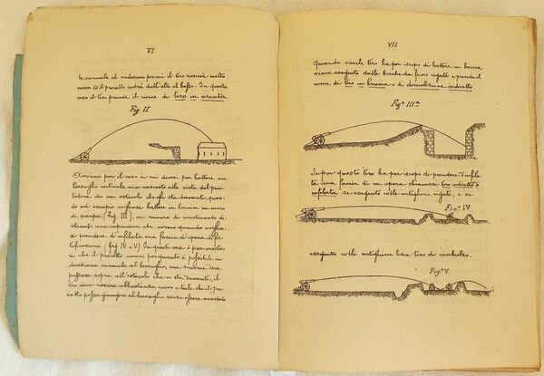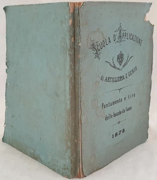 Rara raccolta di appunti del 1878 di questa raccolta di appunti della scuola d'Applicazione di Artiglieria e Genio sul puntamento e tiro delle bocche da fuoco.<BR>Alcune illustrazioni all'interno. Gli appunti sono stati redatti in copia manoscritta. In buone condizioni. Copertina editoriale in discrete condizioni con usure e perdite marginali. Piatto anteriore quasi staccato Legatura in discrete condizionRara raccolta di appunti del 1878 di questa raccolta di appunti della scuola d'Applicazione di Artiglieria e Genio sul puntamento e tiro delle bocche da fuoco. Alcune illustrazioni all'interno. Gli appunti sono stati redatti in copia manoscritta.In buone condizioni. Copertina editoriale in discrete condizioni con usure e perdite marginali. Piatto anteriore quasi staccato Legatura in discrete condizioni con lievi rotture. Pagine in buone condizioni con rare fioriture. Mancanze alll'angolo superiore destro delle prime tre pagine. In 8. Cm 25,5x19. Pp. VIII+246.i con lievi rotture. Pagine in buone condizioni con rare fioriture. Mancanze alll'angolo superiore destro delle prime tre pagine. In 8. Cm 25,5x19. Pp. VIII+246. Scarce collection of lessons of 1878 of this collection of notes of School of Applicazione di Artiglieria e Genio about shooting mouths.<BR>Some illustrations inside. The notes have been written in manuscripted copy. In good conditions. Editorial cover in fair conditions lightly worn in the edges. Front plate is almost detached. Binding in fair conditions with light cracks. Pages in good conditions with occasional foxing. Lacking in the upper right corner of the first three pages. In 8. Cm 25,5x19. Pp. VIII+246.