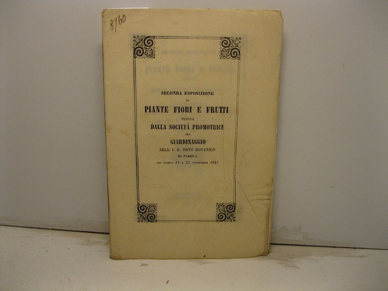 Seconda esposizione di piante fiori e frutti tenuta dalla Societa' promotrice del giardinaggio nell'I. R. Orto Botanico di Padova nei giorni 21 e 22 settembre 1847
