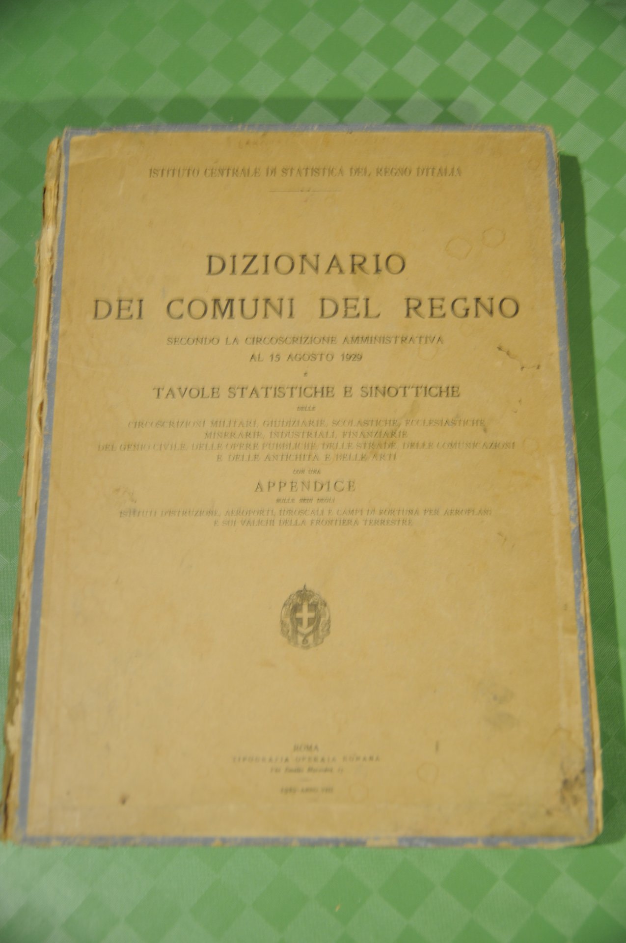 dizionario dei comuni del regno secondo la circoscrizione amministrativa al 1929 tavole statistiche e sinottiche. .