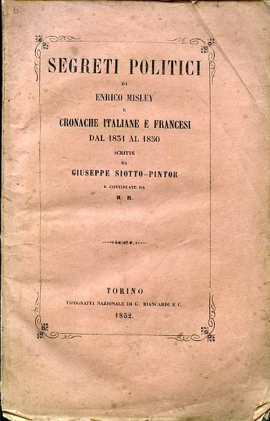 Segreti politici di Enrico Misley e Cronache italiane e francesi dal 1831 al 1850 scritte da Giuseppe Siotto - Pintor e continuate da R. R.