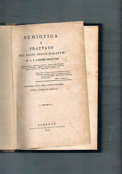 Semiotica o trattato dei segni delle malattie di A. J. Landré-Beauvais. Traduzione dalla terza edizione francese rivista, corretta ed aumentata.