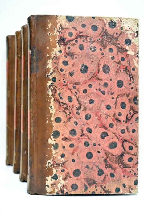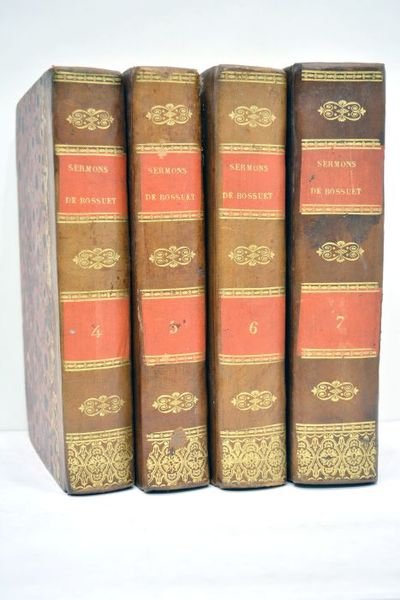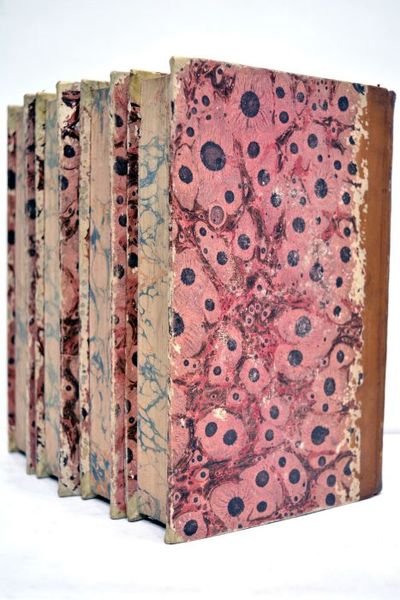 4 volumes. Tomes 4, 5, 6 et 7 seuls. 592 pages. + 644 pages. + 611 pages. + 688 pages. (21x13,5cm). Demi-basane. Dos lisse décoré en or. Pièces de titre et tomaison rouges. Plats en cartonnage couvert de papier marbré. Tranches marbrées. Légères épidermures sur le dos. Frottements et manques de papier sans gravité sur les plats. Coupes élimées. Quelques rousseurs et traces de mouillure à l'intérieur. Bel ensemble de 4 volumes bien reliés à l'époque dans une demi-basane qui mérite une restauration.