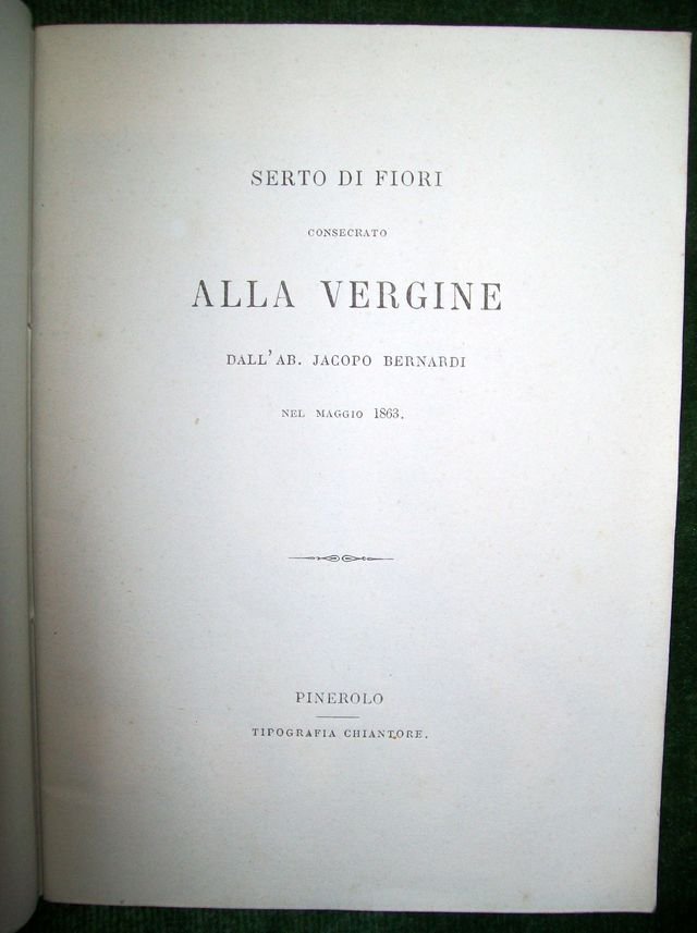 Serto di fiori consecrato alla Vergine dall'Ab. Jacopo Bernardi nel maggio 1863