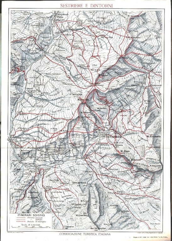 Sestriere e dintorni. Cartina da rivista Le vie d'Italia n. 1, 1938