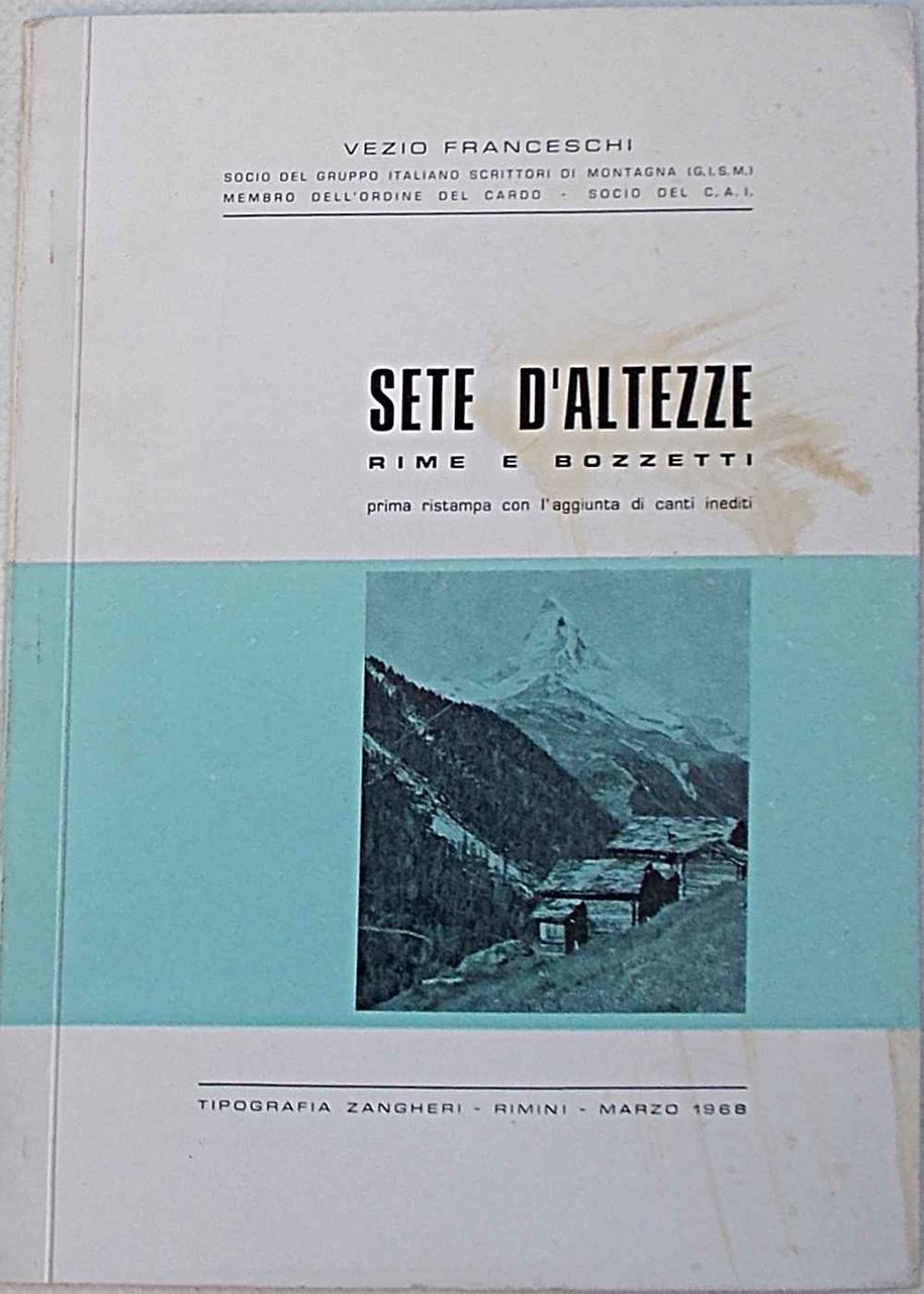 In 8° (cm. 22,5 x 16); pagg. 72; leggera cartonatura origin.a due coll. con lieve macchia superficiale, ma ottimo esemplare. VG. ** Prima ristampa con l'aggiunta di canti inediti.