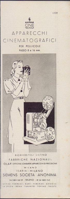 Siemens apparecchi cinematografici. Advertising 1940