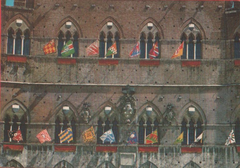 Siena. Palazzo comunale con le 17 bandiere delle Contrade. Non viaggiata. Originale